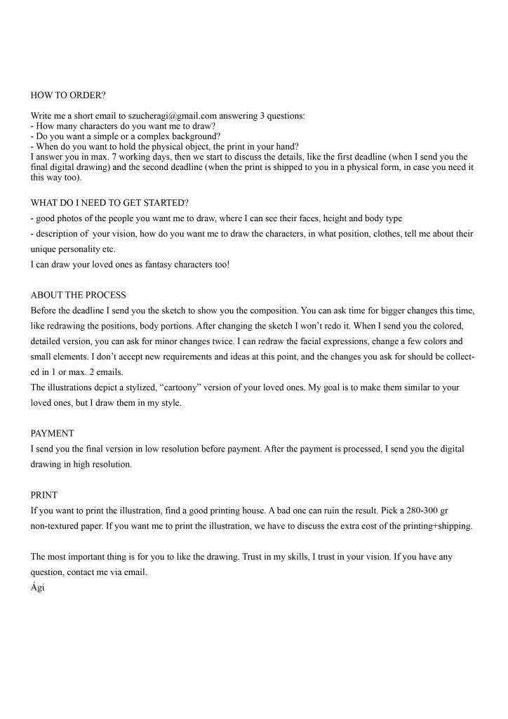 Write a message to szucheragi@gmail.com after you checked out my price list and rules below (scroll all the way down).